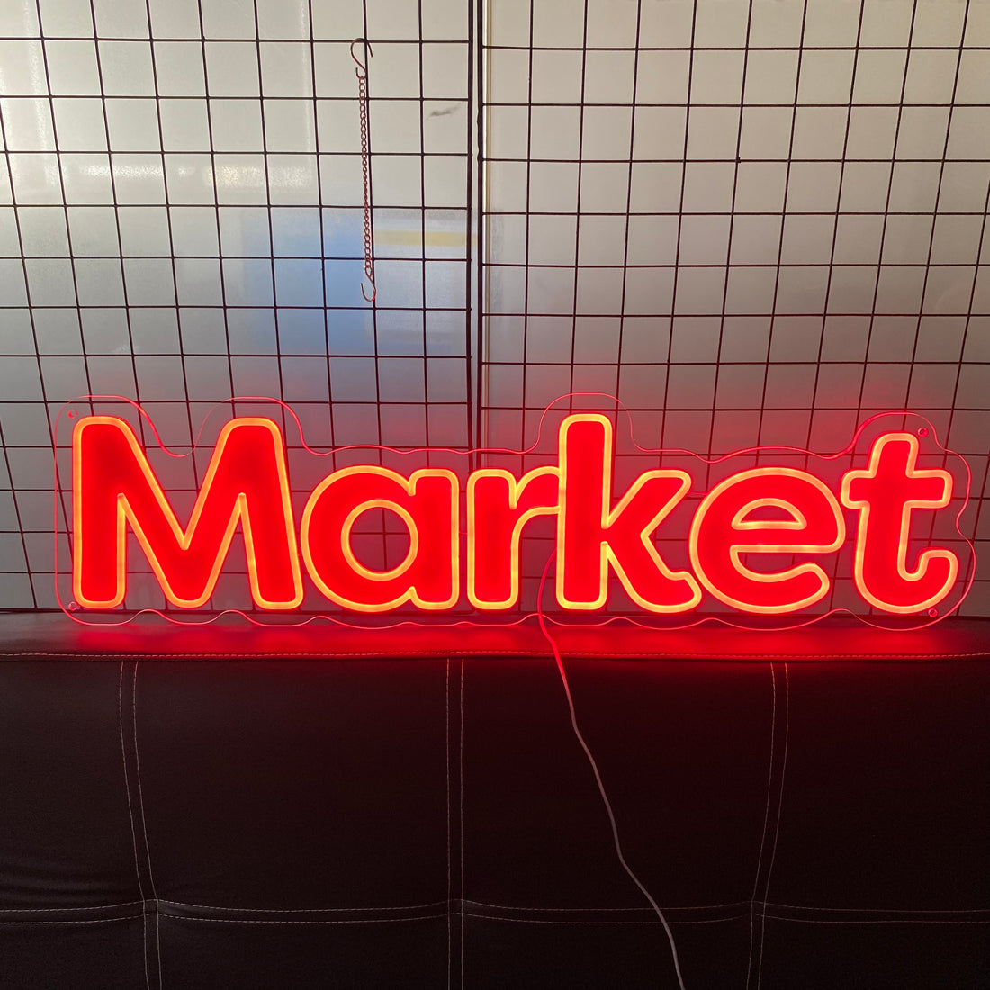 Market Neon Sign Red LED Light – Vintage Style Custom Neon Sign for Farmers Market, Grocery Store, Food Truck, Cafe, Shop Window Display, Business Wall Decor, Open Sign Vibes