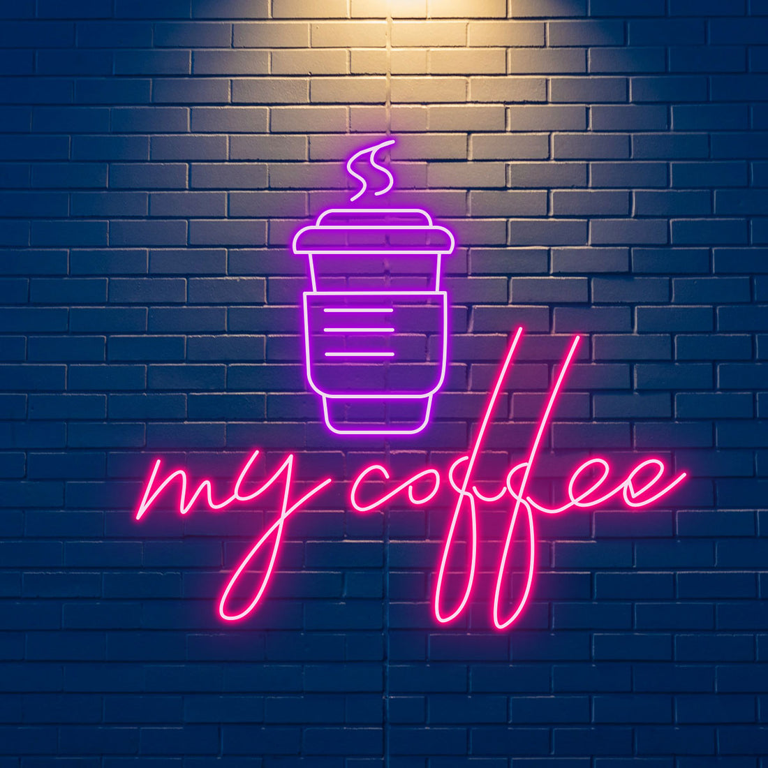 Purple & Hot Pink "my coffee" LED Neon Sign, Custom Coffee Shop Wall Decor Light, Gift for Coffee Bar, Kitchen or Café Lovers Room