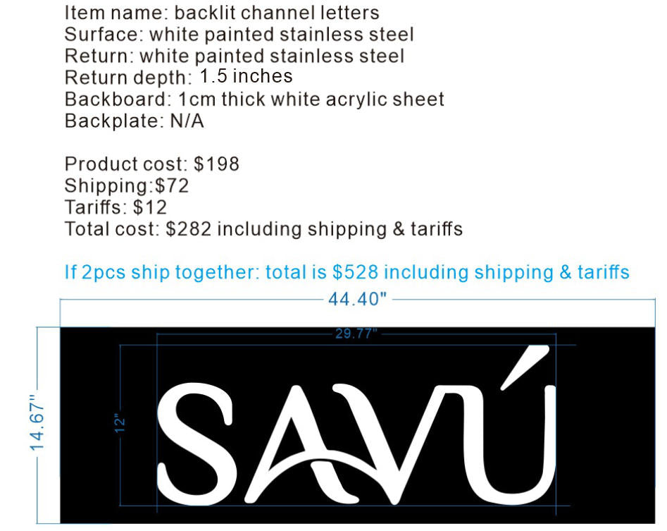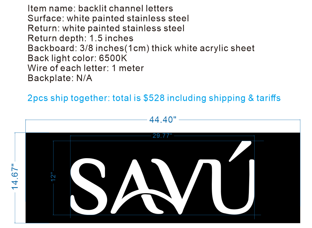 SAVU backlit channel letters sign *2pcs