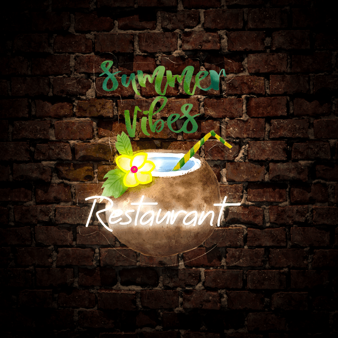 Summer Vibes Coconut restaurant Artwork Neon Sign
