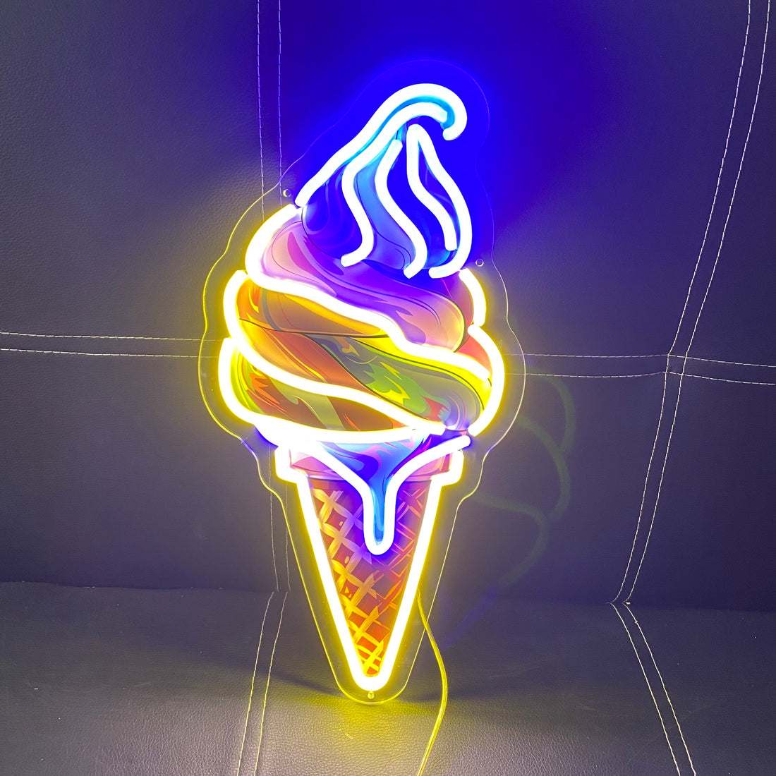 Colorful Ice Cream Neon Sign LED Wall Light, Blue Purple Yellow Green Mixed Color Design for Dessert Shop Cafe Bar Backdrop Decoration