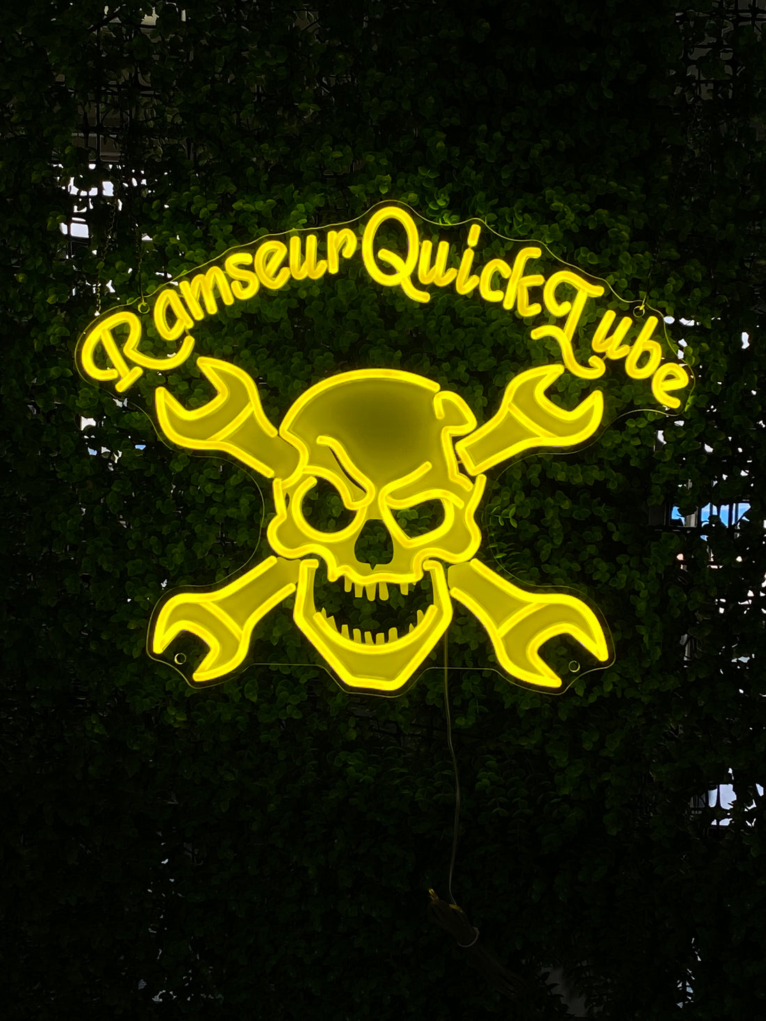 Custom Skull & Wrench LED Neon Sign for Auto Shop/Garage Business Decor