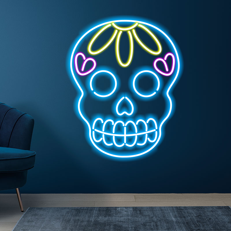 Custom Skull LED Neon Sign, Personalized Colorful Neon Light,Perfect for Day of the Dead, Tattoo Shops and Party Decor
