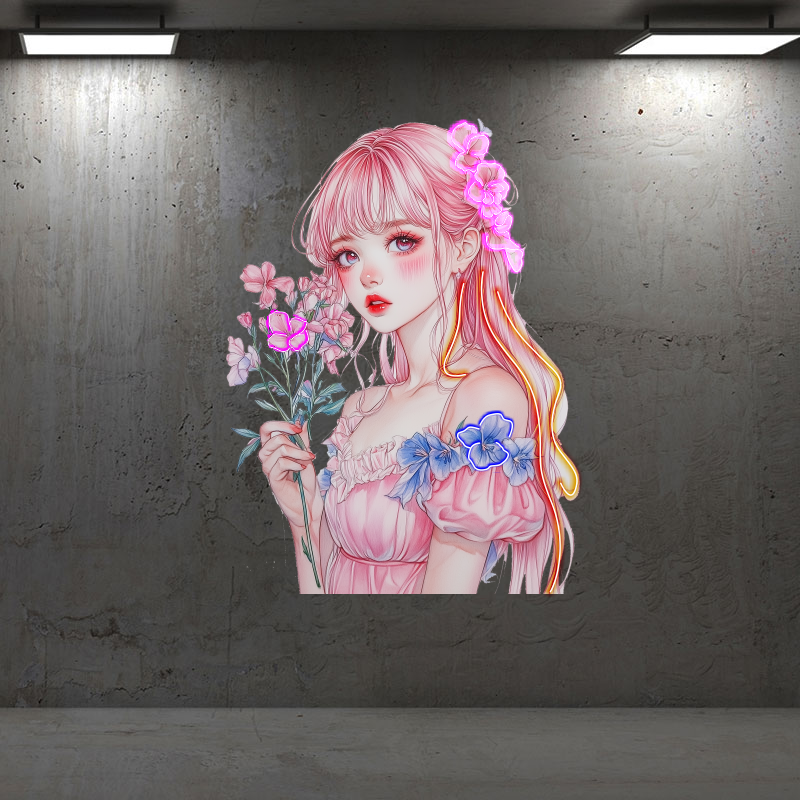 Cute Girl Neon Sign, Anime Style Neon Lights, UV Print Lights, Gifts For Anime Lover, Custom Gifts, House Decor, Bedroom Decor