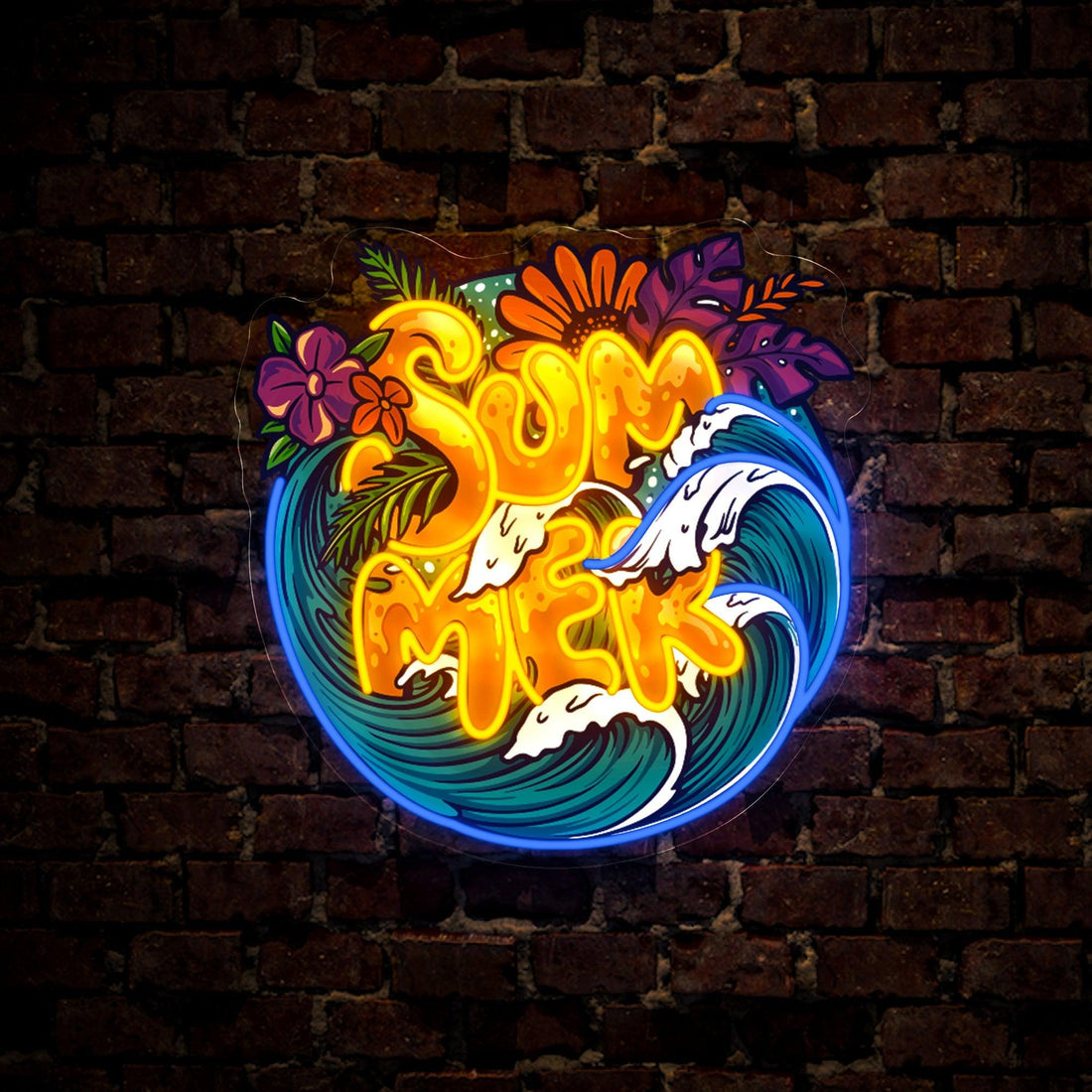 Hello Summer Neon Sign - Vibrant Multicolor LED Light for Tropical Vibes, Eye-Catching Wall Decor for Parties, Beach Houses & Summer Rooms
