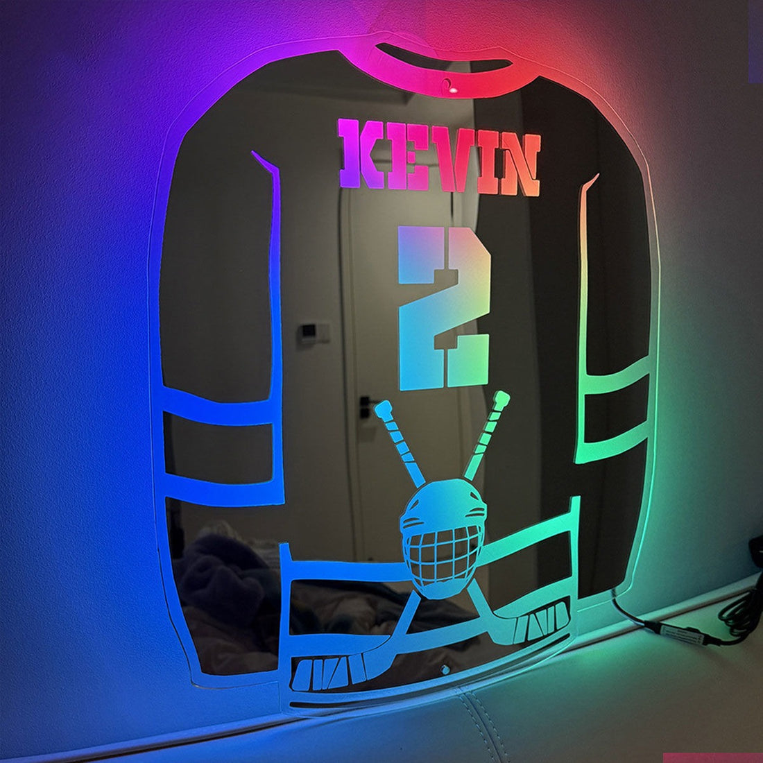 Personalized Ice Hockey Jersey Mirror - Custom Illuminated Name Mirror Sign - Cool Bedroom Decoration or Party Decoration for Sports Lover