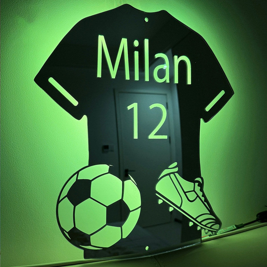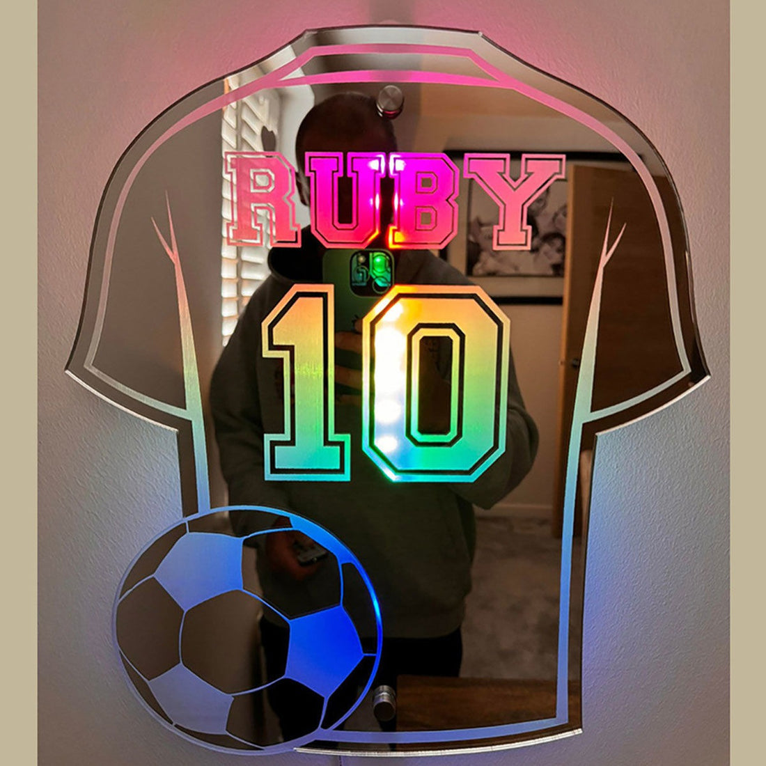 Personalized Football Jersey Mirror - Custom Illuminated Name Mirror Sign - Cool Bedroom Decoration or Party Decoration for Sports Lover