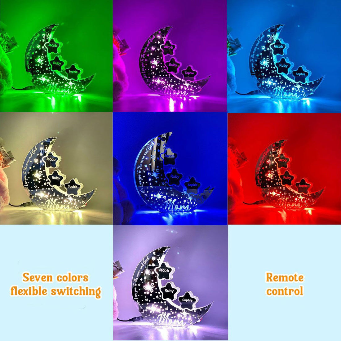 Personalized Celestial Moon Light - Custom Kid Names on The Night Light as Best Personalized Gift for Mother's Day, Family or Friends