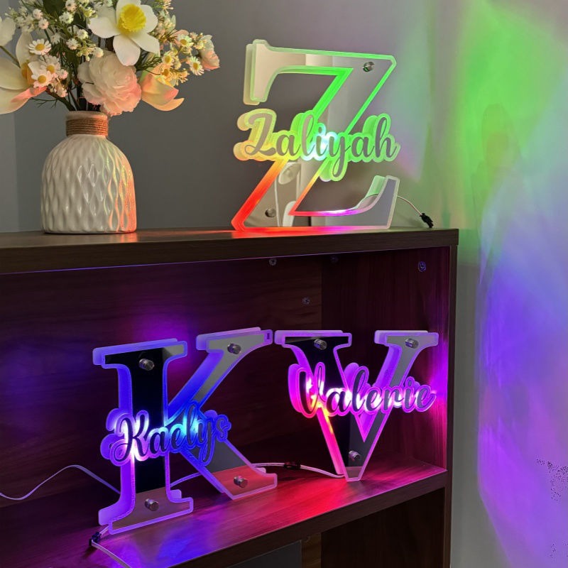 Personalized Name LED Neon Sign Mirror with Uppercase Letter - Christmas-themed Mirror Signs