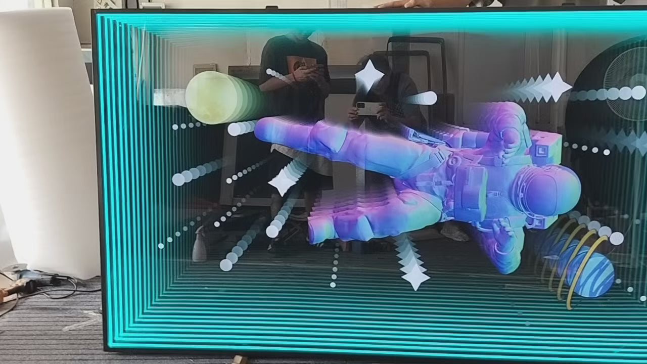 Astronaut Infinity Mirror Wall Art – LED Rectangular Space Illusion Light, Blue Green 3D Galaxy Decor with Stars & Planets