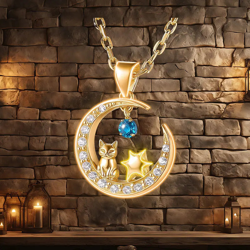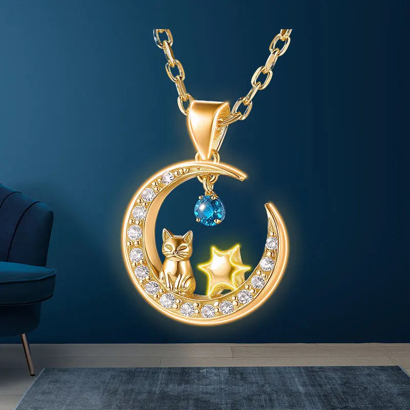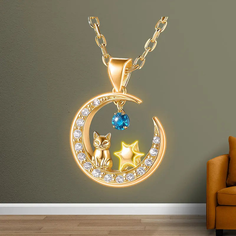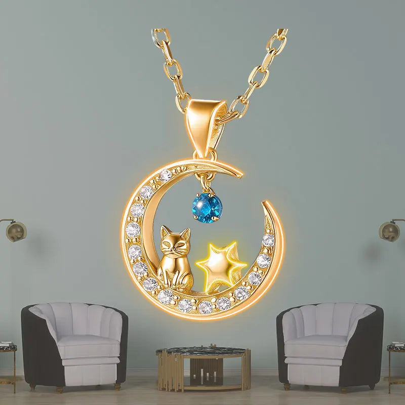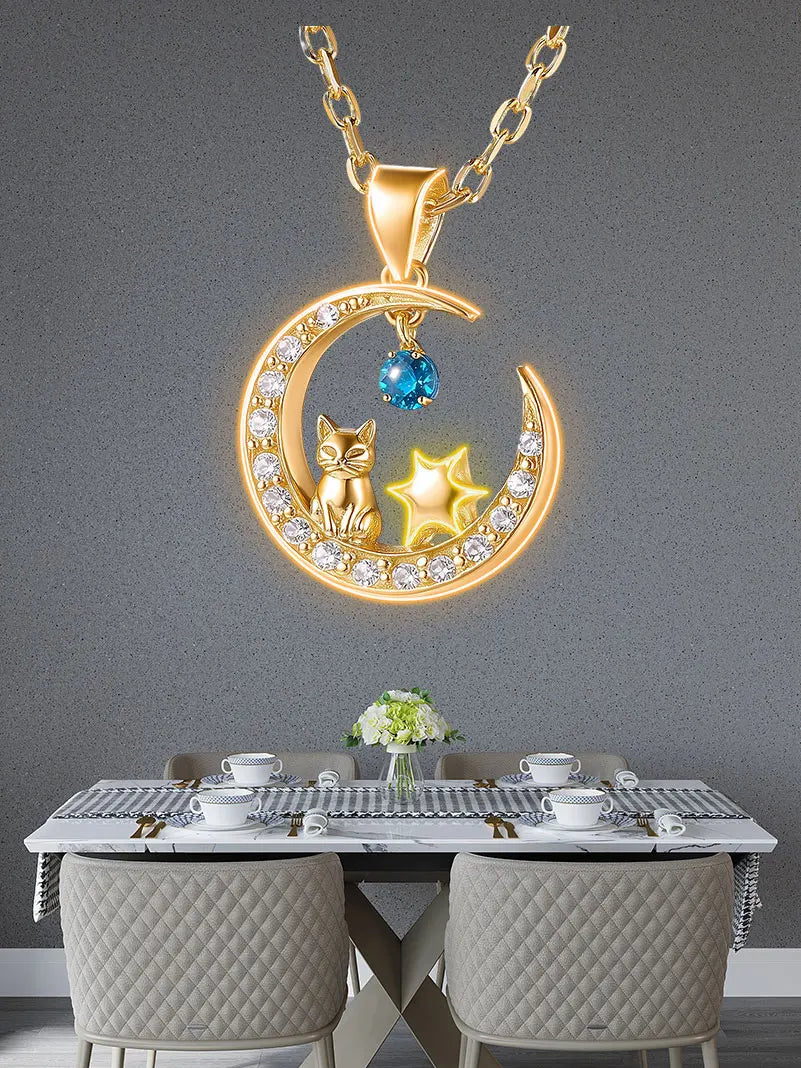 Charming Cat Star Moon Diamond Necklace Neon Sign, Creative Wall Hanging Neon Light, Perfect Decor Light