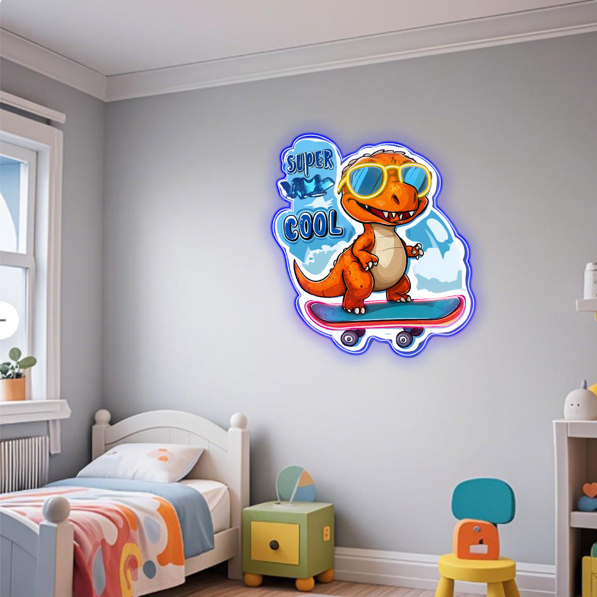 Custom LED Neon Sign Dinosaur Skateboard Wall Light Super Cool Design for Kids Room Decor Trendy Style Home Lighting