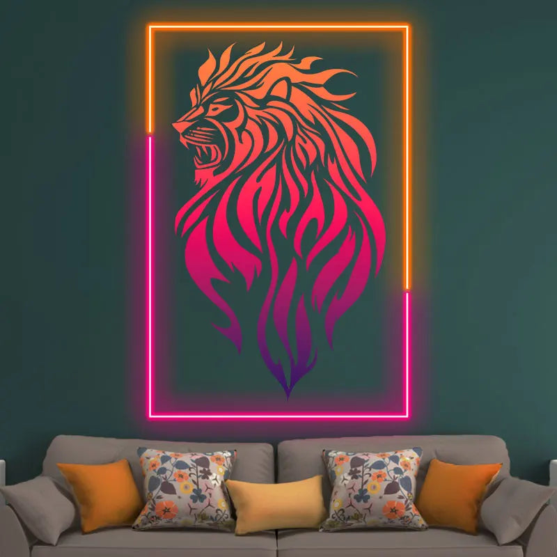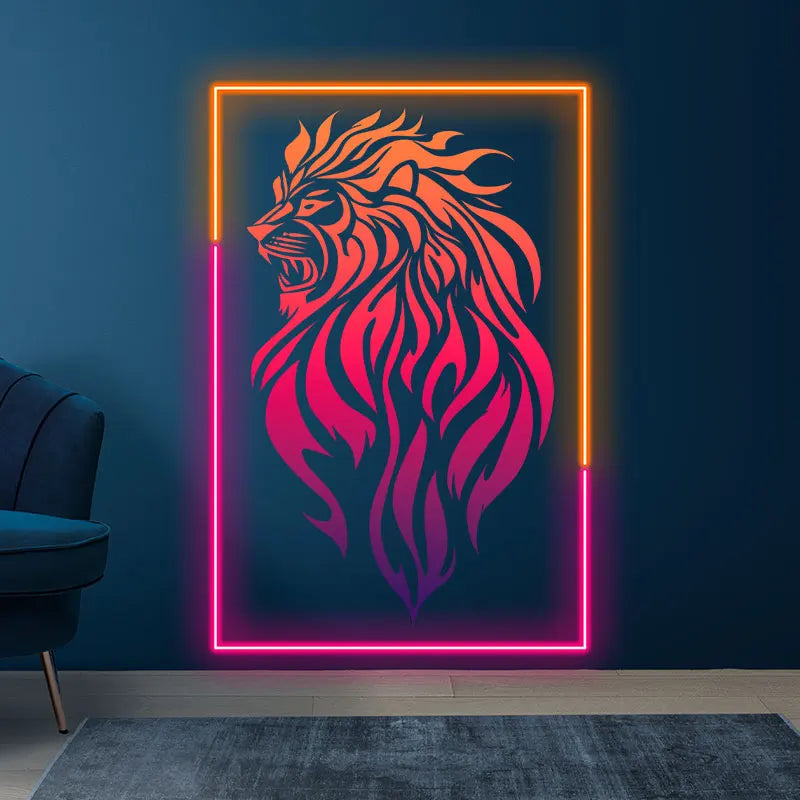 Fierce Lion Tattoo Neon Light, Modern & Stylish Neon Art Wall Decor, Perfect Gift for Lion Lovers, Personalized Room Decor Light