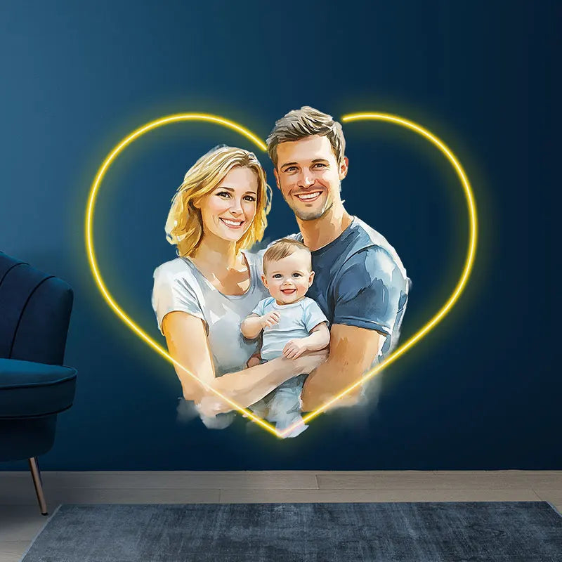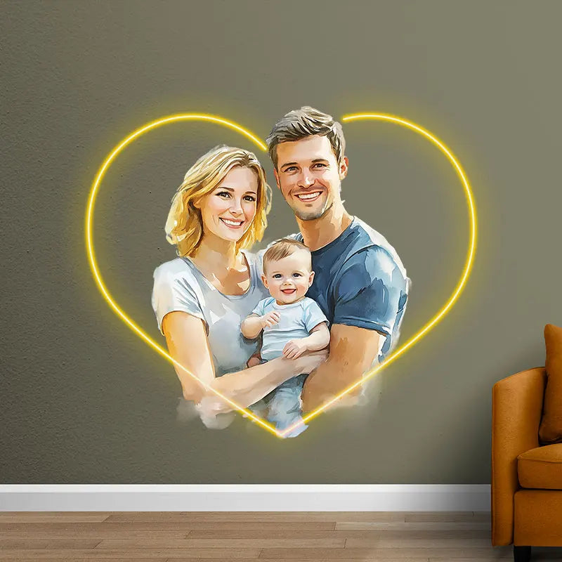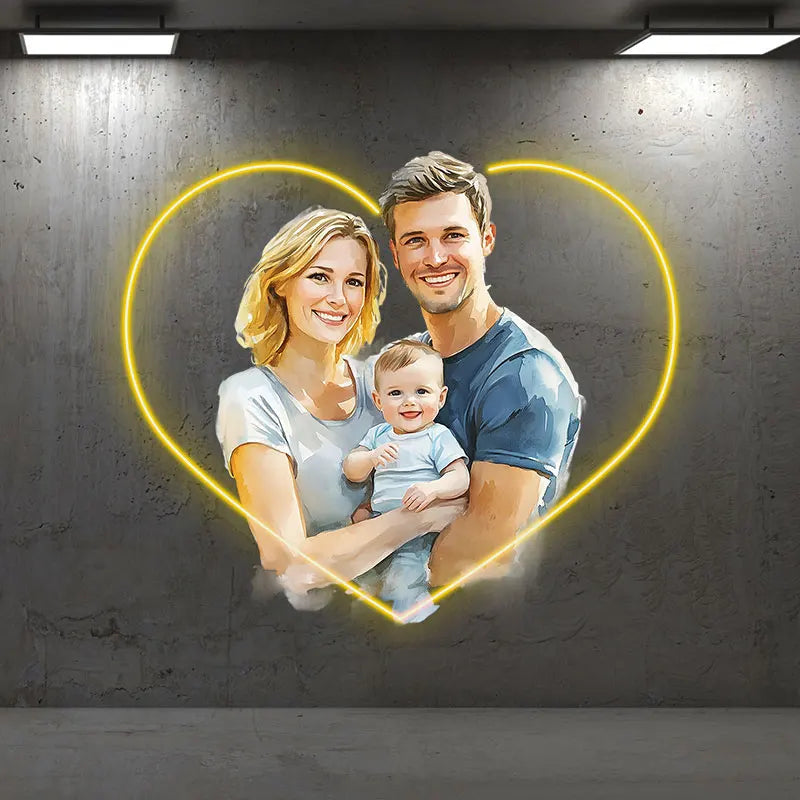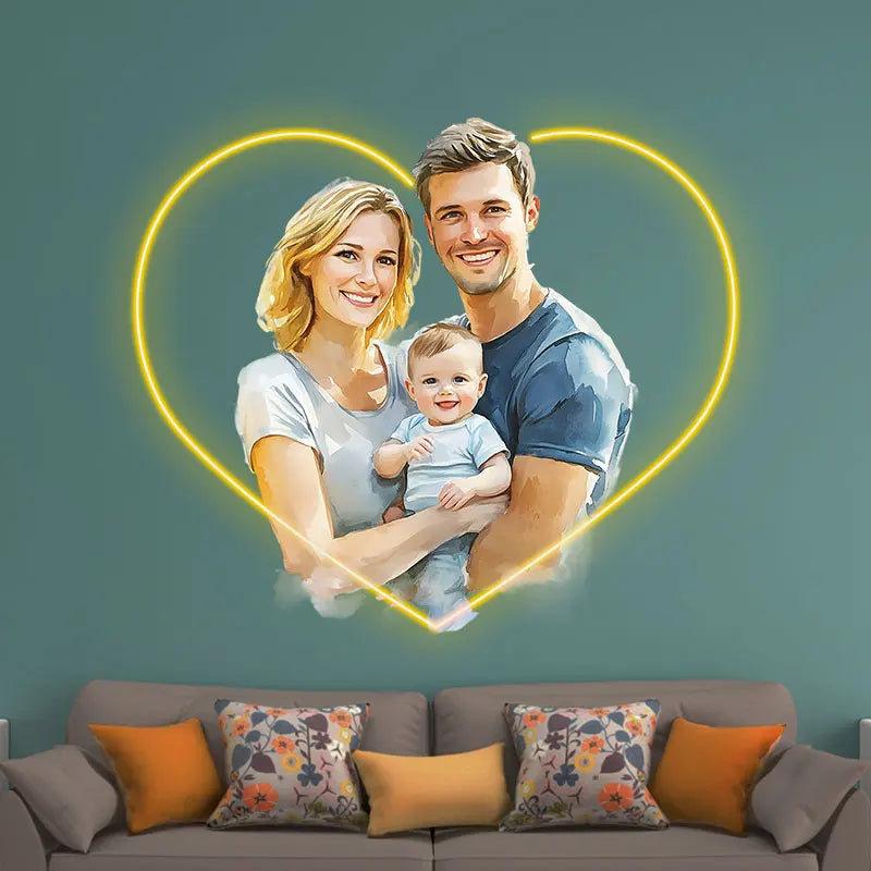 Happy Family Acrylic Custom Neon Sign, Personalized LED Light Sign, Creative Gift Neon Light For Home Decor