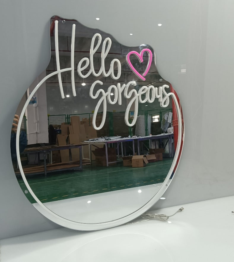 Hello Gorgeous Neon Sign Neon Mirror with Light Makeup Mirror Wall Decor Mirror Light