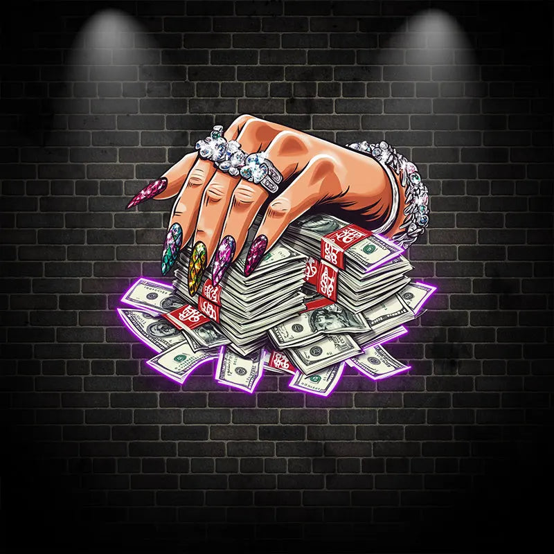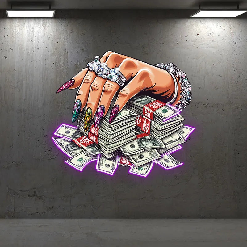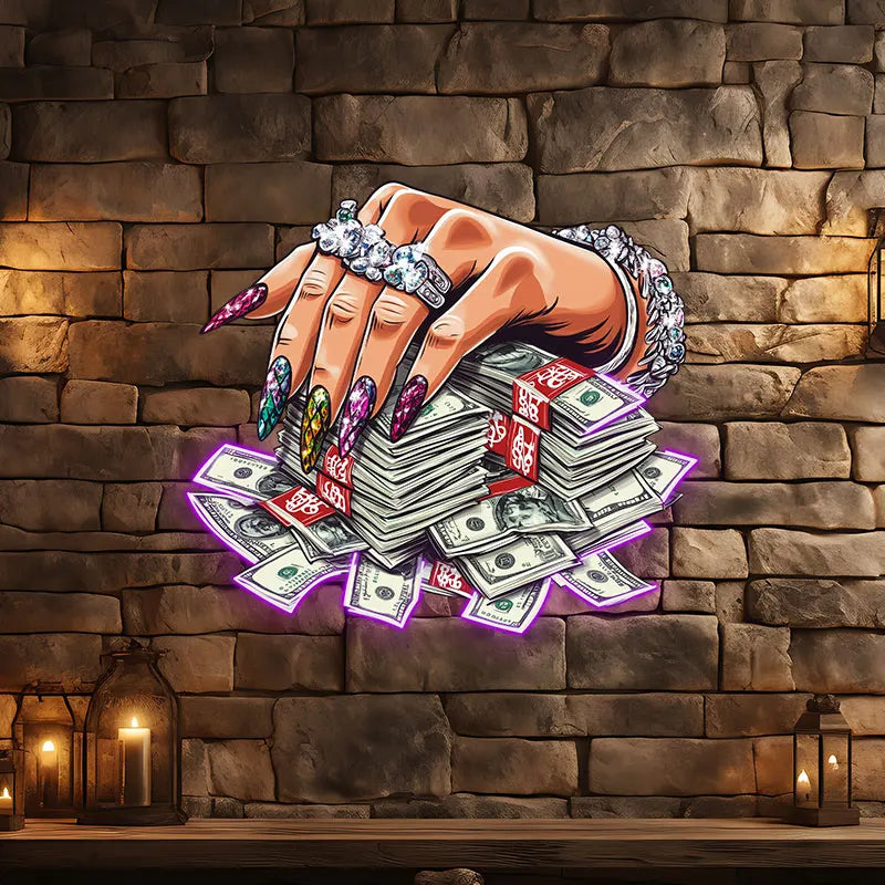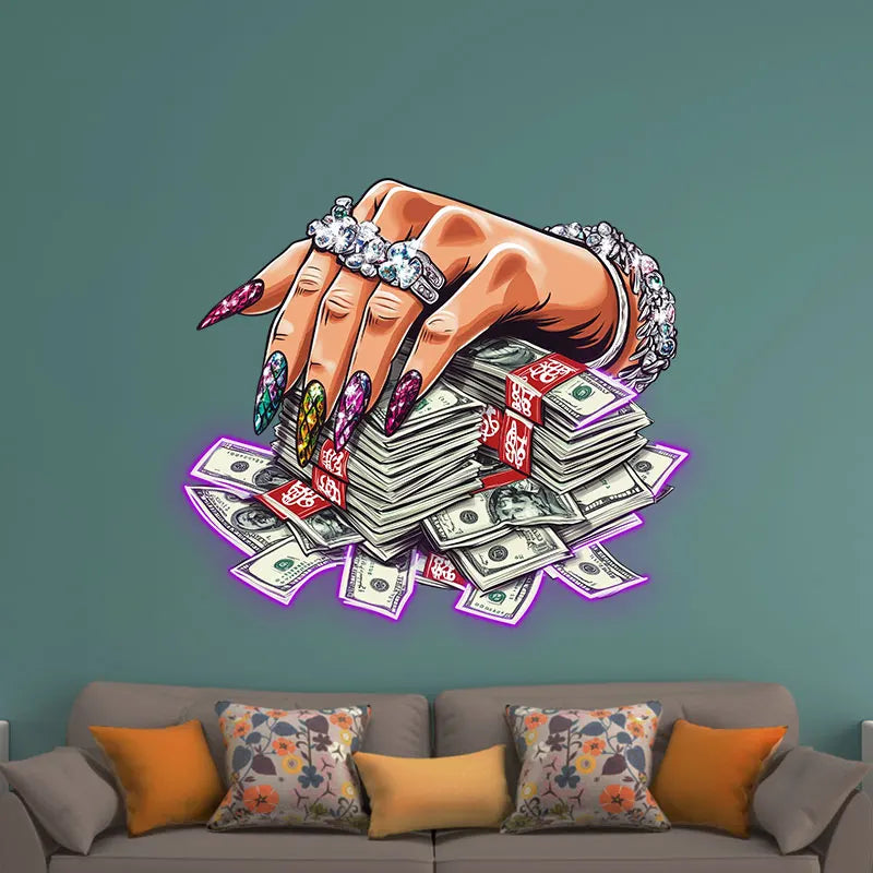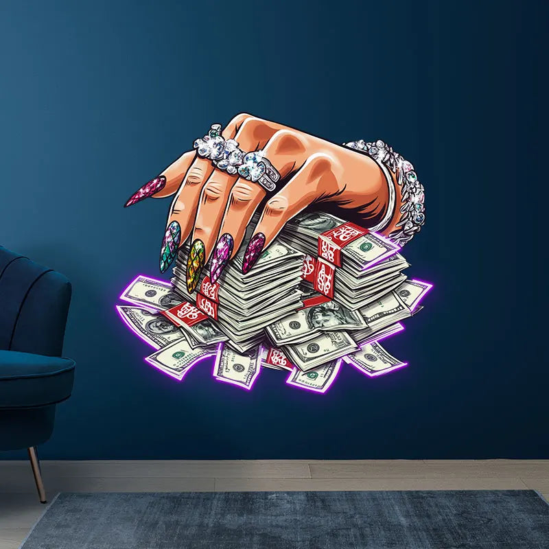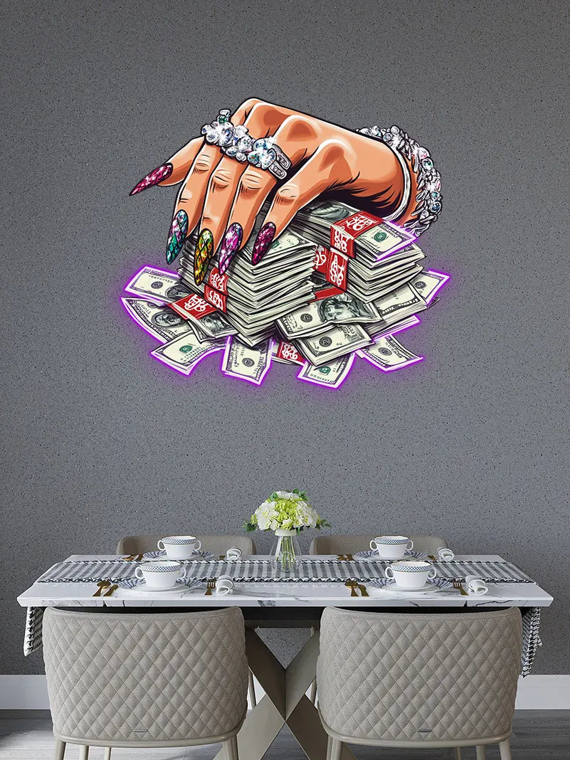 Jeweled Hand Pressed A Handful Of Money Neon Sign, Creative Wall Hanging Neon Light, Wall Decor LED Light