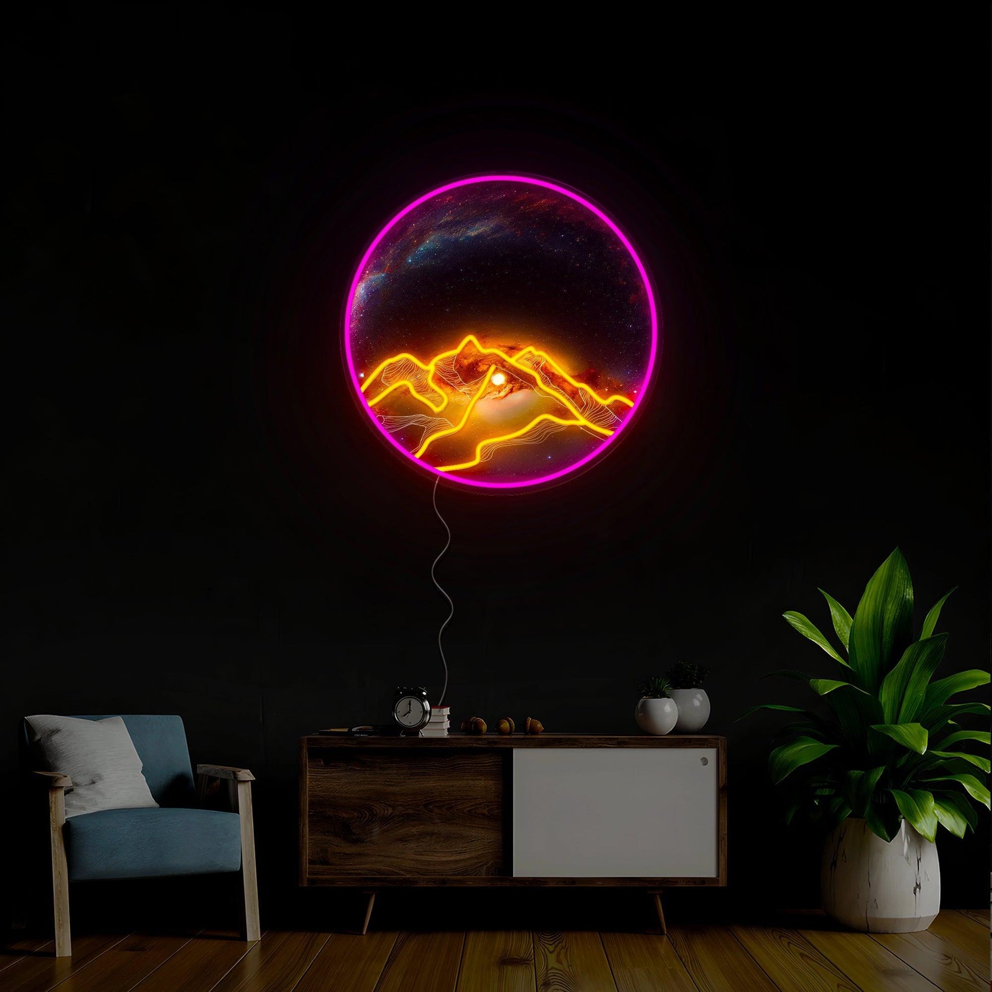 Mountain At Night Artwork Neon Sign