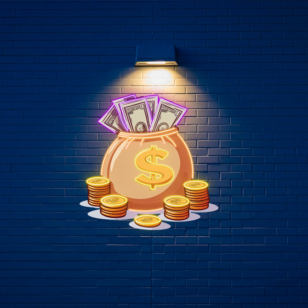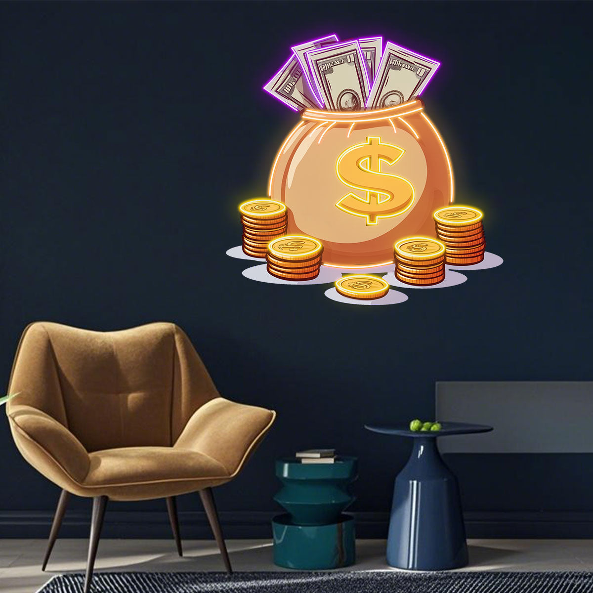 Neon Money Bag Sign,Symbol of Wealth & Success, Ideal for Retail Stores, Home Decor & New Year Celebrations,inspired Parties