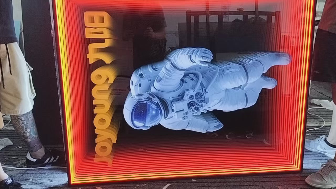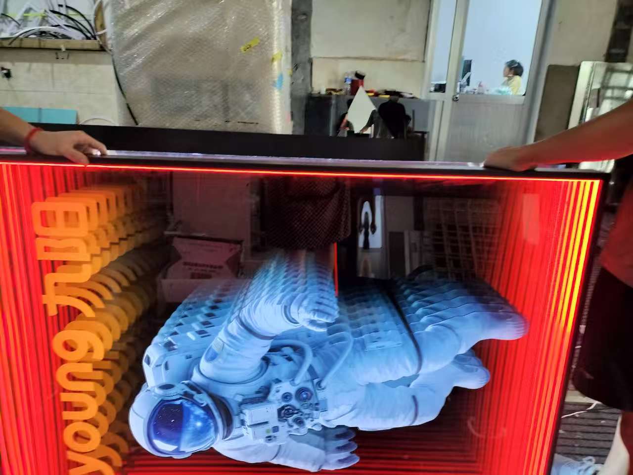 Square Infinity Mirror Astronaut Wall Art – LED Neon Light with Forever Text, Red Frame and Space Theme Decor for Modern Interior
