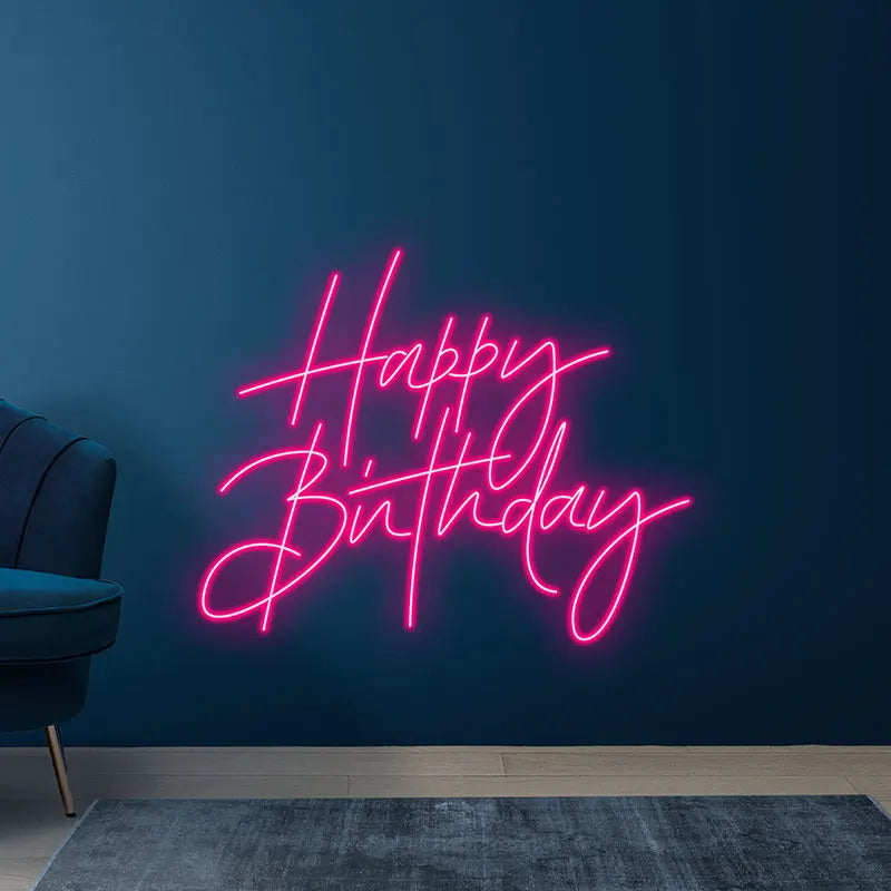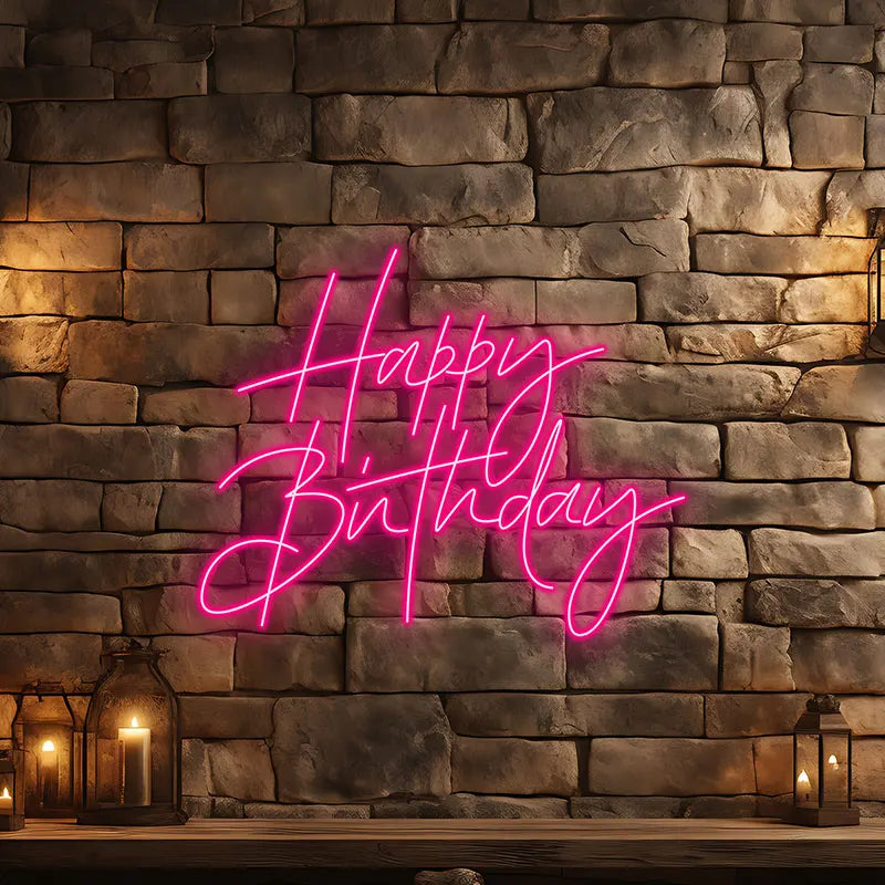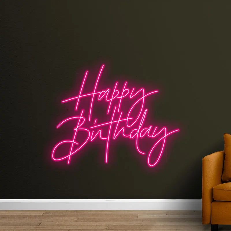 Toysign Custom Neon Light, Elegant Happy Birthday Neon Sign – LED Wall Art for Birthday Party Decor, Celebration, and Home Decor